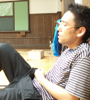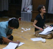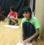 こんなにみんなは地味にきちんとしてきました。しかしながら、わりと猛暑つづきと俳優陣のムダな暑くるしさむんむんのせいか、舞台セットの一部自然素材は、まるで牛小屋の臭、いや、匂いです。稽古場はまるで野性児の寝ぐらのようになってきました。断っておきますけど我々の衛生面は万全。ご安心あれ!嘘ツカナイアルヨ。…「ウソツカナイアルヨ」…そういえば、北京で小娘にふっかけられて買ったパンダTシャツ。稽古着にしたらカワイイピンクのでうれしかったのに、ちょっとしか着てないのに、もうワキがほころんだ。ええい、着れたもんじゃないわっ!カネガエくんにリハビリ代わりにでも縫ってもらわにゃならん!まったく邪魔くさい!