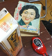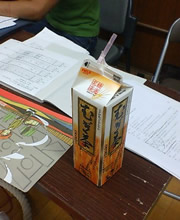 また、岡嶋さんがペットボトルにくるくる巻いている水滴防止用なのか、日本手ぬぐいにはいつもシワひとつありません。アイロンどころか、ノリづけもかかしていないようにみえます。こちらまでキリリと身の引き締まる和柄ペットボトルです。落語家さんが本やお財布や皿にする手ぬぐいみたいにパリっとしてて感心いたします。ひょっとして、岡嶋さんは落語家さんなのかもしれません。