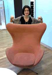 しかし、ここにくれば、いつでもタダで座れることが判明。高価な椅子と気付いてる客はあまりいないのか、わりと穴場な空間。一緒に行った高校時代の友人、Y子ちゃんに撮ってもらいました。というか、値段を知った途端、椅子を撮りまくるY子ちゃんでした。60万円の椅子で心行くまでくつろぎたい人、乃木坂あたりにGOしてみてください。